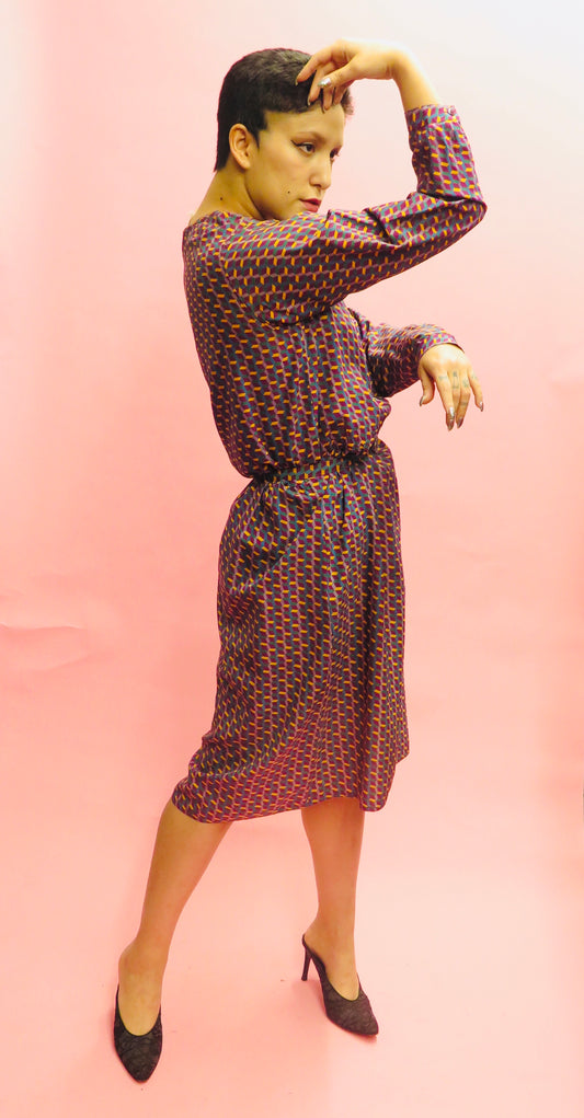 1970’s Diane Von Furstenberg Silk geometric Print Belted Dress