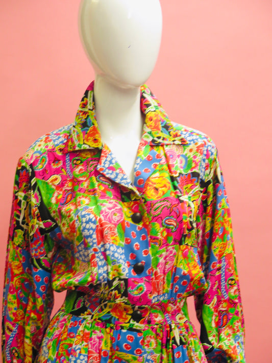 1960’s William Pearson Quilted Floral Cotton Puff Sleeve Dress