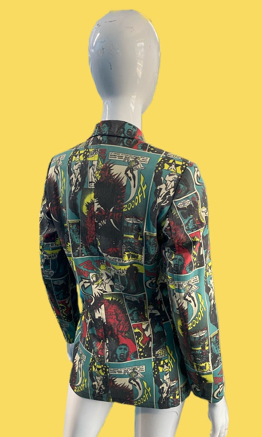 1990’s Iconic Jean Paul Gaultier Virus Man Printed Double Breasted Blazer