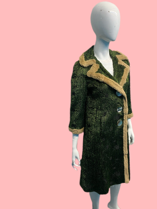 90’s John Galliano Faux Grass with Fur Trim Car Coat
