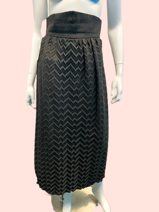 Romeo Gigli Chevron Pleated Wool High Waisted Skirt