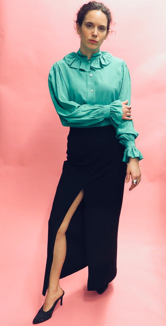 1980’s Omi Norma Kamali Button Front Taffeta Mini Skirt