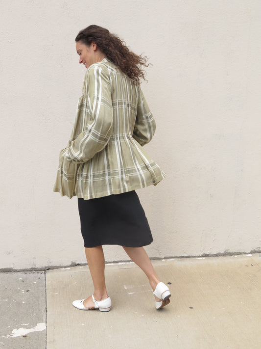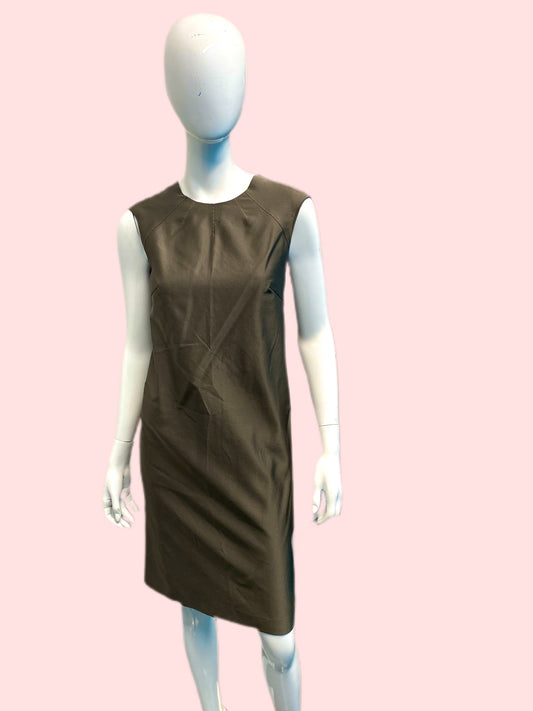 Prada Gunmetal Butterfly Pleated Back Silk Shift Dress