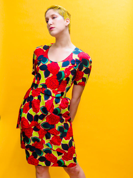 Guy Laroche Bright Roses Petal Tiered Dress
