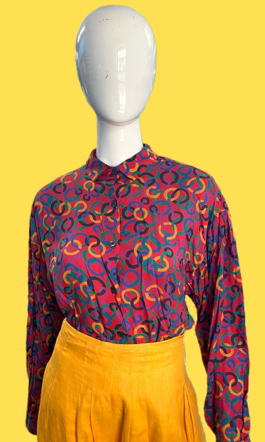 1990’s Perry Ellis Rings Print Button Down Shirt