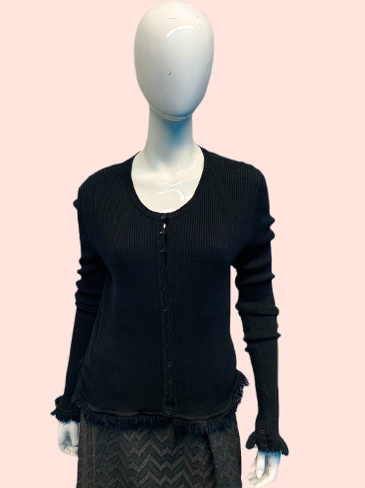 1990’s John Galliano Wool Ribbed Knit Fringe Trim Cardigan