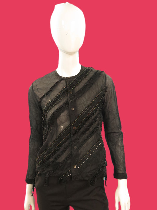 Tricot Comme Des Garçons 2001 Sheer Embellished Mesh Cardigan Top